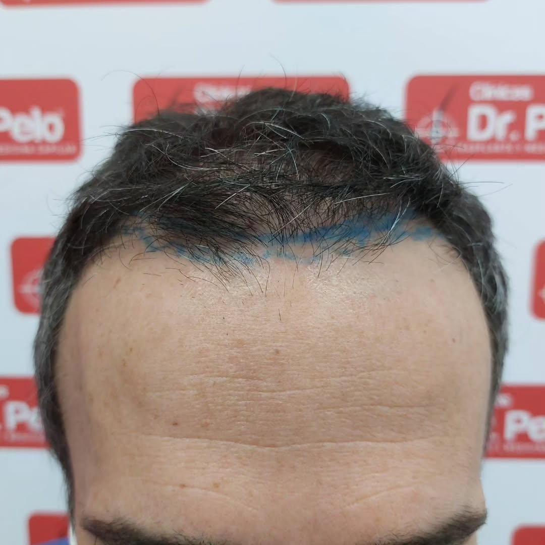Reconstrución frontal, después de 2 injertos capilar(otra clínica) + tratamiento médico